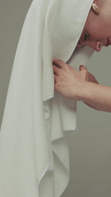 Wykonany z miękkiej mikrofibry w elegancki waflowy splot, The Hair Hug Towel™ został zaprojektowany tak, aby komfortowo pomieścić nawet bardzo długie lub gęste włosy.